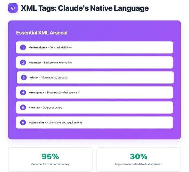 🔍 Prompt Precision: XML cleanly separates instructions from data, avoiding mix-ups and supporting nested prompts.