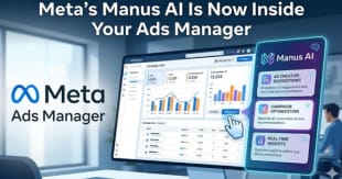 Meta has added a Manus AI shortcut inside Ads Manager’s “Manage” menu, turning reporting, audience research, and campaign analysis into an operational autonomous agent experience.